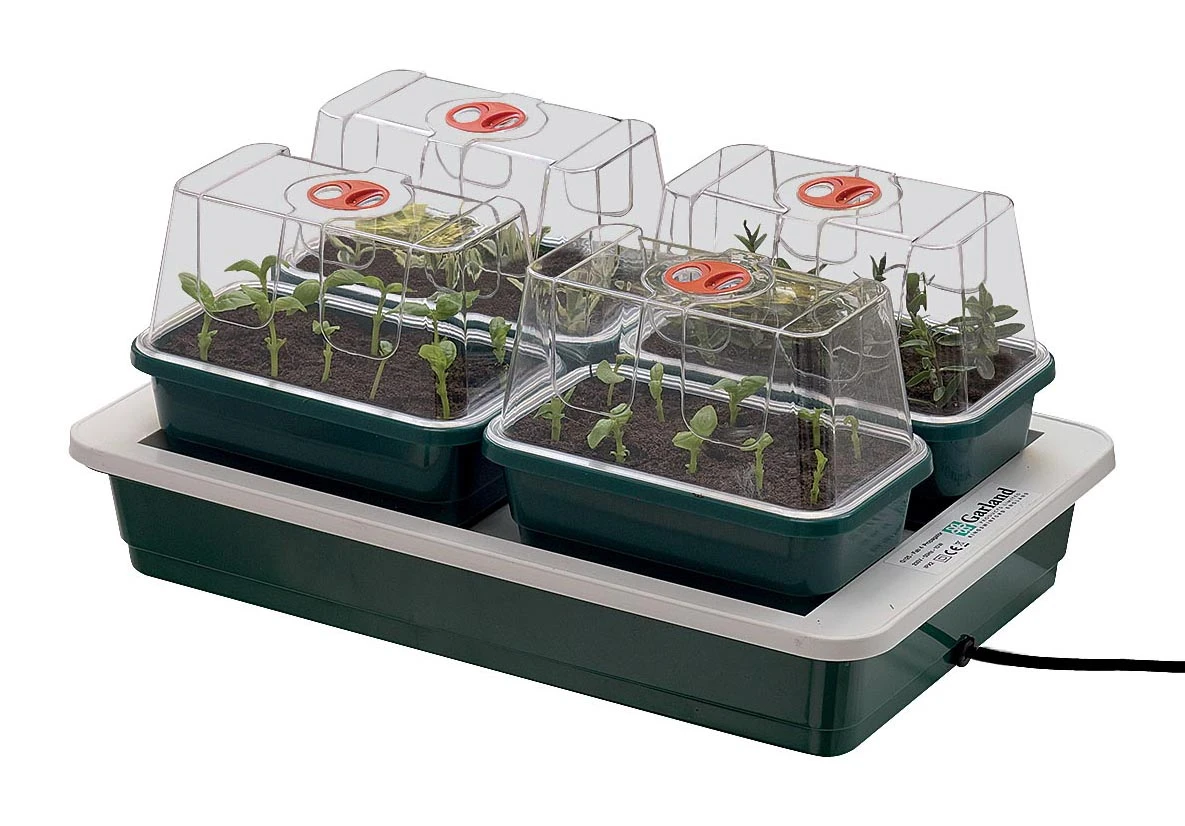 Konzipiert für den begeisterten Gärtner, der eine Reihe von Saatgut-/Stecklingssorten anbauen möchte. Die Größe des elektrisch beheizten Sockels eignet sich perfekt für die Verwendung in einem Gewächshaus oder auf einem Tisch in einem Nebenraum. Der Four Top bietet zusätzliche Flexibilität für den Benutzer, mit 4 unabhängigen kleinen belüfteten Zimmergewächshäusern. Der beheizte Boden enthält ein 40-Watt-Kohlefaserelement für eine gleichmäßige Wärmeverteilung und verfügt über einen eingebauten Thermostat mit fester Temperatur, der eine Komposttemperatur von 19° Celsius aufrechterhält. Das Gerät verfügt über LED-Anzeigen für „Heat On“ und „Power On“. Die spritzgegossene Growbox und die kristallklare hohe Kuppel mit Lüftungsöffnungen sorgen für optimale Wachstumsbedingungen. Der elektrische Anzuchtkasten ist ideal für den Anbau von Gemüse, Blumen und/oder Kräutern. Egal ob Sie Samen anbauen oder Stecklinge bewurzeln wollen. Alle Komponenten sind aus Hartplastik gespritzt, um einen jahrelangen, wiederholten Gebrauch zu ermöglichen. Das Zimmergewächshaus verfügt über eine zweischichtige Drainage und Kapillarlöcher, die eine gesunde Wurzelentwicklung fördern, während die transparente Abdeckung eine volle Höhe von 12 cm bietet.