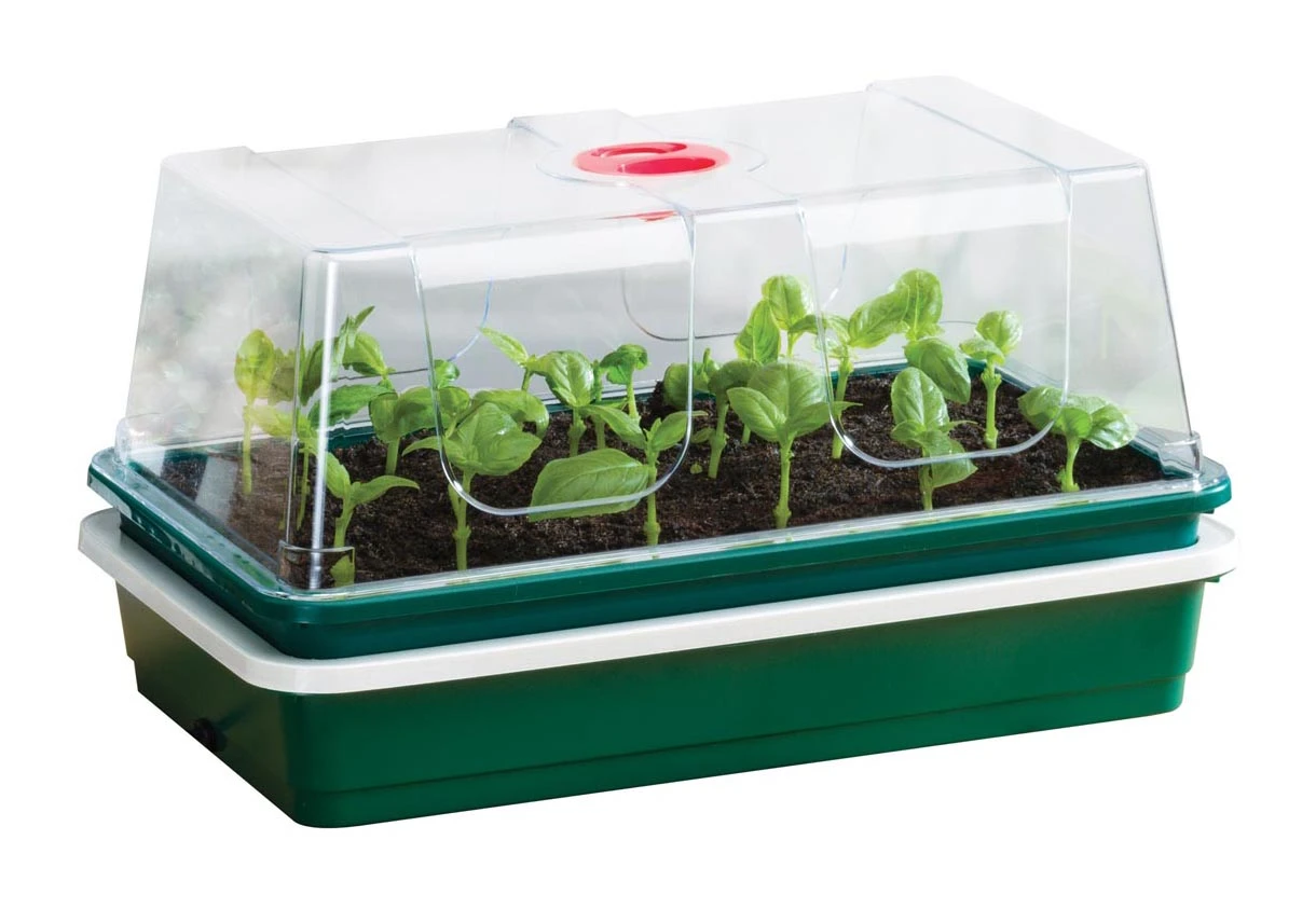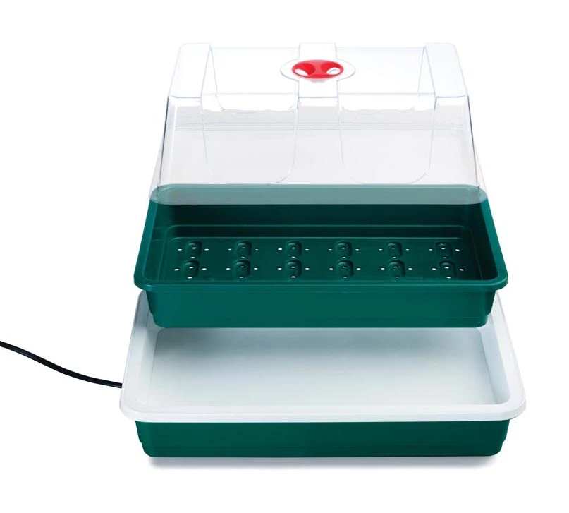 Das elektrisch beheizte Zimmergewächshaus One Top ist kompakt und ideal für die Anzucht von Gemüse, Blumen oder Kräutern. Ob für Samen oder Stecklinge, das One Top verfügt über eine energieeffiziente 8-Watt-Heizung in der Bodenwanne ohne Thermostatsteuerung. Das Garland One Top Zimmergewächshaus besteht aus einem separaten Zimmergewächshaus und einer beheizten Bodenwanne. Der Deckel ist mit einer drehbaren Entlüftung ausgestattet, die sich leicht öffnen und schließen lässt. Das ist sehr wichtig, denn für Setzlinge und Stecklinge braucht man eine konstante Luftfeuchtigkeit von etwa 60-80% und eine Temperatur von 20-25°C. Sparsam im Gebrauch, mit einem 8-Watt-Heizsockel sorgt für die gewünschte Wärme und verbraucht dabei sehr wenig Energie. Hochwirksam, durch die beheizte Erdwärme, wird eine schnelle Keimung, Bewurzelung und Wachstum gefördert. Der kristallklare Deckel mit Belüftungsregler ermöglicht eine gute Kontrolle der Luftfeuchtigkeit; Langlebig. Alle Teile sind aus robustem, spritzgegossenem Kunststoff gefertigt. So werden Sie sehr lange Freude an diesem Set haben; Der Anzuchtbehälter hat Löcher auf zwei Ebenen, um eine gesunde Wurzelentwicklung zu gewährleisten.