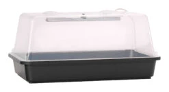 Dieses Minigewächshaus eignet sich ideal zum Kultivieren all Ihrer Samen und Stecklinge. Der Kasten passt auf so gut wie jede Fensterbank. Durch die transparente Haube schaffen Sie eine optimale Umgebung mit viel Licht und Wärme. Sie können die Pflanzen ganz einfach mit den Töpfen umpflanzen, ohne die Wurzeln zu beschädigen. Das Material vergeht in der Erde.