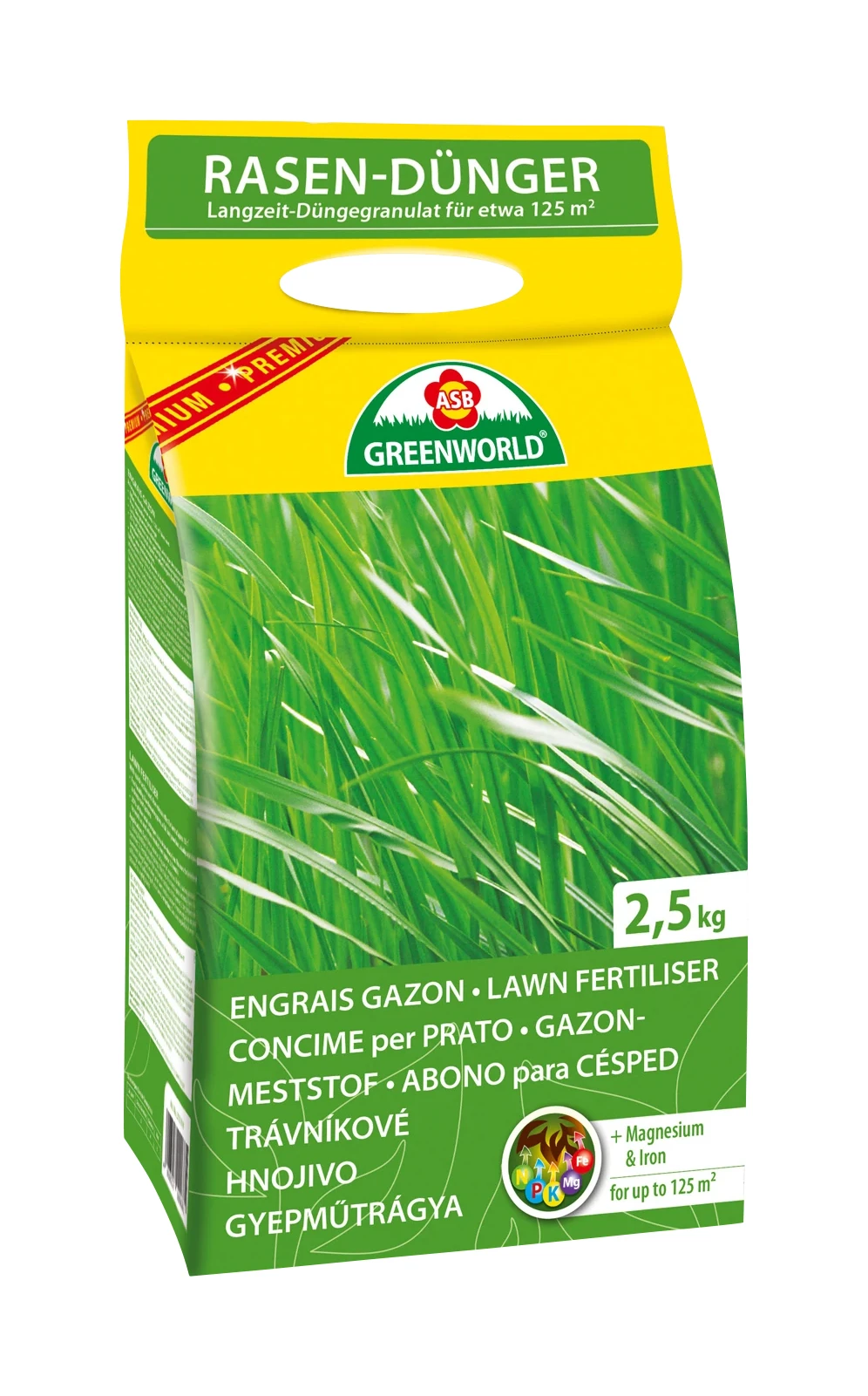 Langzeit-Düngegranulat für etwa 125 m². NPK 20-5-8 (+4% MgO + 1% Fe) mit Magnesium & Eisen für einen dichten und kräftig grünen Rasen.
