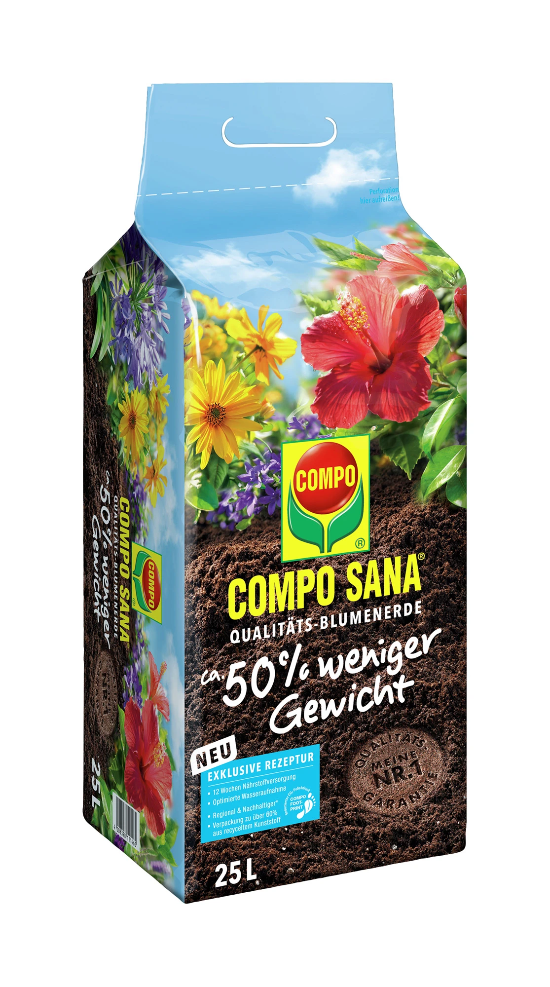 Hochwertige Qualitäts-Blumenerde mit ca. 50% weniger Gewicht und 100% Ergiebigkeit. Leichter Transport und einfache Handhabung dank geringem Gewicht, kompaktem Format und stabilem Tragegriff. Kein aufwendiges Auflockern notwendig, für bequemes Umtopfen der Pflanzen. Mit 12 Wochen Nährstoffversorgung, Perlite und AGROSIL® für eine lockere, luftige Struktur und bestes Wurzelwachstum.