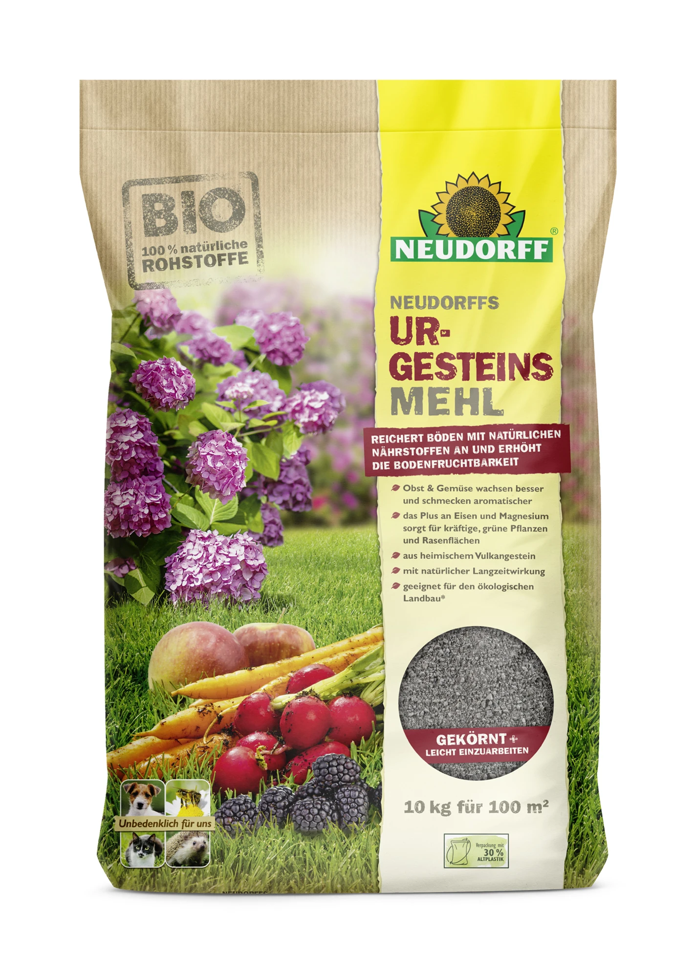 Bodenhilfsstoff hergestellt unter Verwendung von Diabasgesteinsmehl. Zur Wiederanreicherung des Bodens mit Mineralsubstanz und Spurenelementen. Besonders gut geeignet für Moorbeetpflanzen und Immergrüne.