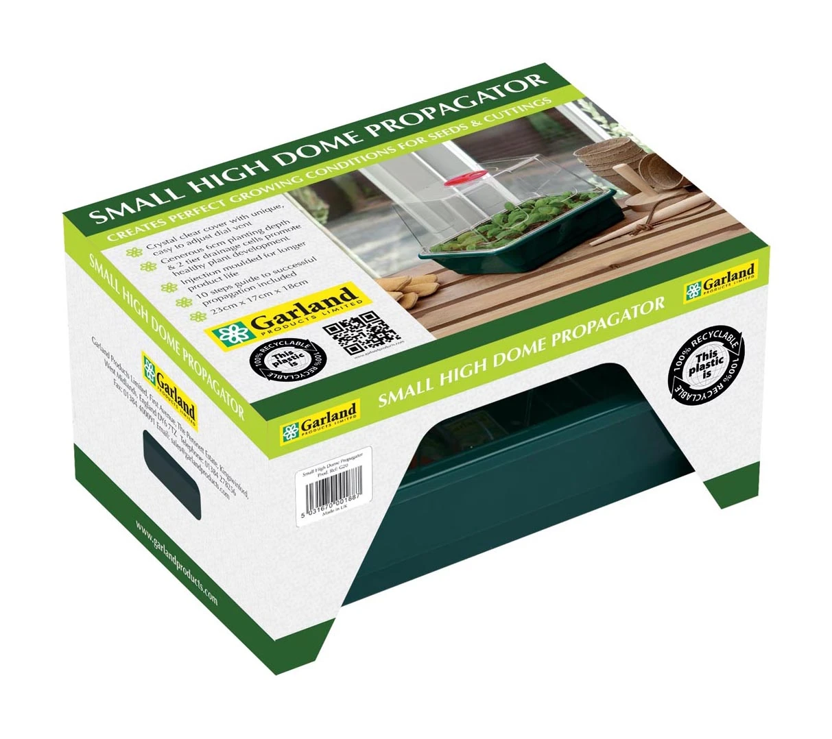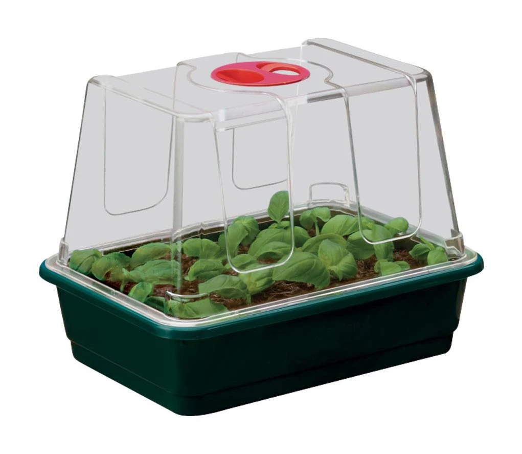 Das Zimmergewächshaus-Set, mit der hohen Haube, bietet den Samen längere Entwicklungsdauer im Anzuchthaus. Dieses Set ist 3-teilig und ist aus stabilem, spritzgegossenem, kristallklarem Material hergestellt. Die Haube ist mit einer praktischen Belüftungsscheibe versehen, mit der Sie die Luftzirkulation und die Temperatur selbst anpassen können. Darüber hinaus sorgt die Haube dafür, dass Schädlinge nicht in die Nähe der jungen Pflanzen/Samen gelangen. Das Anzuchthaus ist in vier Größen erhältlich. Alle Produkte sind pflegeleicht und einfach zu reinigen.